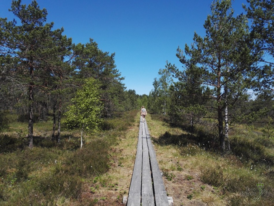 Dosimies pārgājienā pa dēļu celiņu gleznainajā Rīsas (Riisa) purvā, kas atrodas Soomā nacionālajā parkā. Takas ceļā atrodas 8 atpūtas vietas un skatu tornis. Pārvietojoties vispirms pa takas plašumiem, uz brīdi nogriežas taka mežā. Šādās vietās var redzēt kā mežs pārtop par purvu, un pretēji - sausā augsne tiek aizstāta ar mitru zemi un purva augi ar egļu mežiem. Dodoties tālāk, taka sasniedz skaistos purva akačus.